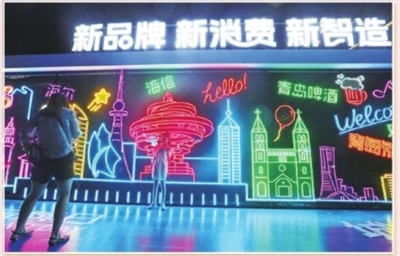 流光溢彩的灯光勾勒出“青岛品牌”。观海新闻/青岛早报记者 杨博文 摄
