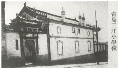 1920年,三江会馆以提高儿童道德修养和生活知识为目的,开办三江旅青私立小学。校址在四方路1号,有教室三间,办公室一间,杂用室几间,校长为朱启泰。它是青岛地区中国人开办的第一所私立新式小学。1922年,有教职员7人、学生60人。1923年发展为涵盖高小、初小的两级小学。到1924年,有职员9人、教师4人、学生121人,年经费3500元。当时青岛8家私立小学中,如信义两级小学年经费一般300元左右,挪庄两级小学年经费一般也就200元,而三江小学达3500元,远远高于其他学校,因此延聘教师的水平也高。况且学校和三江会馆在一起,会馆戏楼、会馆议事厅也可利用,只是体育场极小。虽然经费非常高,但学费比一般私立小学低一半,初期只招四省在青岛人士的子女,以后才面向社会招生。