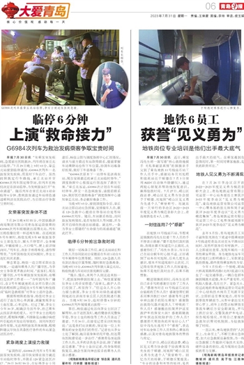 7月27日,崂山区政法委、崂山区见义勇为协会授予抢救乘客冯先生的于顺德、刘旭照“崂山区见义勇为先进个人”荣誉称号。回忆当天的场景,于顺德反复提及:“专业的设备和有效的培训,是我出手最大的底气。在乘客遇到危急情况时,第一时间对乘客施救,是我的职责所在。”
