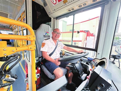 酷暑中,管涛不惧高温“烤”验热情服务乘客。