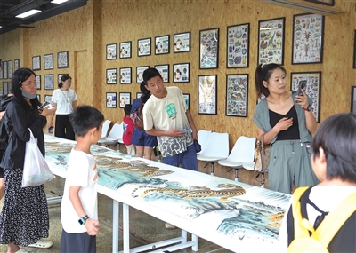 现场展出的画卷上,老虎们有的在翻腾,有的在扑跃,有的在吼叫,有的在狂奔,形态各不相同,但都惟妙惟肖、栩栩如生。“这只个头大的是东北虎,这个白色的是孟加拉白虎,我就是属虎的,也很喜欢老虎,我都认识。”展出现场,吸引了不少游客驻足,现场一位小朋友指着画卷告诉记者。