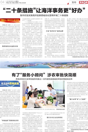 记者了解到,今年以来,青岛西海岸新区行政审批服务局立足“政务为民、服务先锋”党建品牌,站在企业和群众视角进行制度创新和流程再造,探索出涉农服务小顾问审前服务、视听版涉农小顾问讲堂、延续换证信用审批等一系列涉农服务便民举措,实现涉农审批“快、简、顺”。