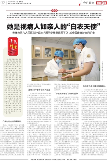 今年,李桂美再次决定从自己的积蓄中拿出20万元设立“李桂美天使奖励基金”,希望激励更多品学兼优的年轻人加入护理队伍。她说:“其实我一个人的能力是有限的,我也不再年轻,但护理工作是我一生的挚爱,希望同样有这个志向的年轻人能够实现白衣天使的理想,把护理事业接力传下去。”记者了解到,医院同时设立“青岛市护理职业道德教育基地”,弘扬传承李桂美式新时代南丁格尔精神。