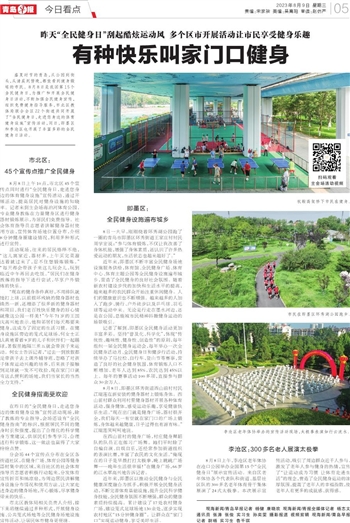 盛夏时节的青岛,从公园到街头,从清晨到傍晚,都能看到健身锻炼的市民。8月8日是我国第15个全民健身日,为推广和开展全民健身日活动,不断加强全民健身宣传,组织免费健身指导服务,市北区教体局联合全区22个街道共同开展了“全民健身日,走进您身边的体育健身设施”宣传活动,同日,即墨区和李沧区也开展了丰富多彩的全民健身日活动。