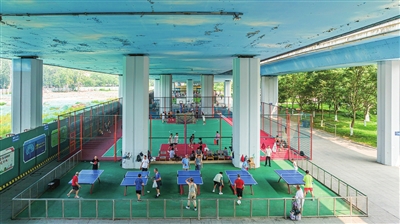 “现在的健身条件真好,不用排队就能打上球,以前损坏残缺的健身器材也焕然一新,还增添了很多新的健身器材和项目,我们老百姓快乐健身的好心情就像这公园一样美!”今年71岁的王国庆高兴地表示,他和邻居们每天都要来健身,这成为了固定的生活习惯。在健身设施区旁边的笼式足球场,何女士正认真地看着9岁的儿子和伙伴们一起踢球,暑假里她隔三差五就会带孩子来运动。何女士告诉记者,“过去一到放假都是带孩子去上课外辅导班,忽略了对孩子体育运动兴趣的培养,后来孩子接触到足球就一发不可收拾,现在家门口就有这么便利的场地,我们当家长的当然全力支持。”