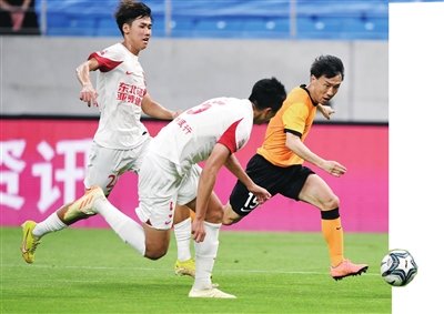 青岛海牛球员徐洋(右)在足协杯比赛中。 新华社发