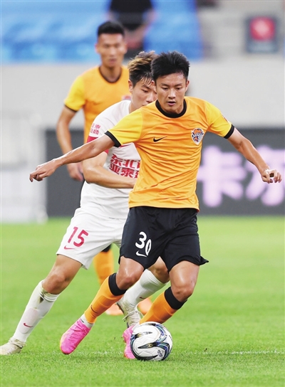 青岛海牛球员钟晋宝(前)在足协杯比赛中。新华社发