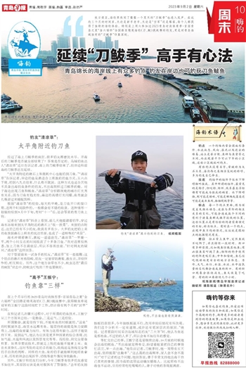 另外,王振宁和钓友们分析,今年刀鲅季有很多钓友感觉不如往年,其原因应该是鱼对假饵有了警惕性。“去年钓友抽铁板钓获很多,今年抽铁板就不行,改用串钩后情况有所改观。我们这个分析不一定有道理,或许还有更深层次的原因。”他说。记者前段时间采访岛城知名钓友“二大爷”时,他认为鱼还是那些鱼,不过钓的人多了,所以会有不如往年的感觉。