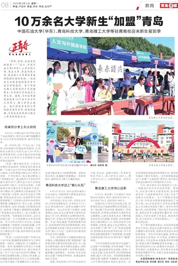 “同学,你好,欢迎来到新校园……”近日,中国石油大学(华东)、山东科技大学、青岛大学、青岛科技大学、青岛理工大学等驻青高校校园忙碌而热闹,一批批来自全国各地的青年学子赶往学校报到。各个学校也都以其特有的方式迎接新生,引导他们尽快适应大学生活。据悉,今年驻青高校将迎来10万余名本专科以及硕士、博士研究生新生。他们将在青岛的大学校园里续写求学、深造的故事,为青岛这座青春之城注入更多的青春活力。