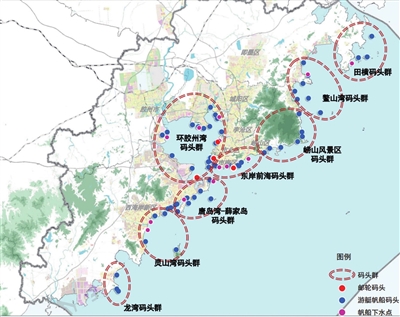 《专项规划》内容显示,我市综合考虑自然资源条件、旅游资源分布以及海域海岸带保护要求,充分利用现有码头设施进行转型升级,形成“8大码头群,4处邮轮码头、59处游艇帆船码头(停靠点)、13处帆船下水点”的总体空间格局。其中“8大码头群”分别为田横码头群、环胶州湾码头群、鳌山湾码头群、唐岛湾—薛家岛码头群、崂山风景区码头群、灵山湾码头群、东岸前海码头群、龙湾码头群。