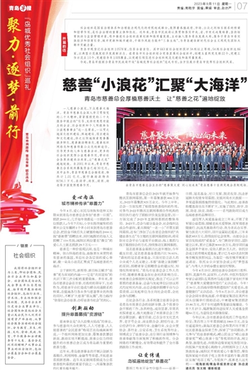 一人慈善小浪花,万众慈善大海洋。青岛市慈善总会深入学习贯彻党的二十大精神,紧紧围绕党的二十大报告中提出的“引导、支持有意愿有能力的企业、社会组织和个人积极参与公益慈善事业”这一总要求,一以贯之地深化组织建设、阵地建设、项目建设和文化建设,持之以恒地探索慈善募捐多样化、慈善救助精准化、慈善组织网络化和慈善形象公众化的新途径,引导更多的人参与慈善活动、更多的社会组织发挥公益慈善作用,带动社会各界共建共治共享,让“慈善之花”遍地绽放。自2001年以来,青岛市慈善总会系统共募集资金已超30亿元,其中去年,青岛市慈善总会接收款、物共计1.01亿元,拨付救助款物共8236.1万元,在助学、助医、助困、助老等方面发挥慈善作用。