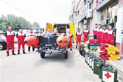 2021年7月,青岛红十字搜救队第一时间响应赶赴河南协助水灾救援。青岛红十字搜救队供图