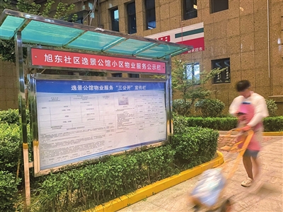 昨晚,记者来到李沧区逸景公馆小区进行探访。进入小区后,首先看到立在路边的物业服务宣传栏,上面贴有公共收益情况、物业服务内容、物业费收取标准以及管家电话等。