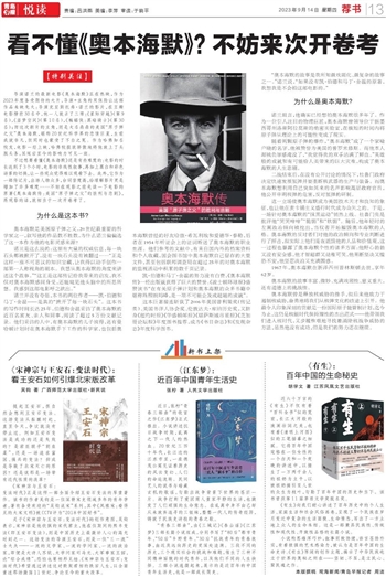 不过想要看懂《奥本海默》还是有些难度的:电影的时长达到了3个小时,电影的非线性叙事,再加上黑白和彩色场景的切换,让一些观众觉得难以观看下去。此外,它作为一部传记片,出场人物众多,台词密度高,给理解影片更是增加了许多难度……不妨在观影之前先读一下电影的原著《奥本海默传:美国“原子弹之父”的胜利与悲剧》,再观影的话,就相当于一次开卷考了。