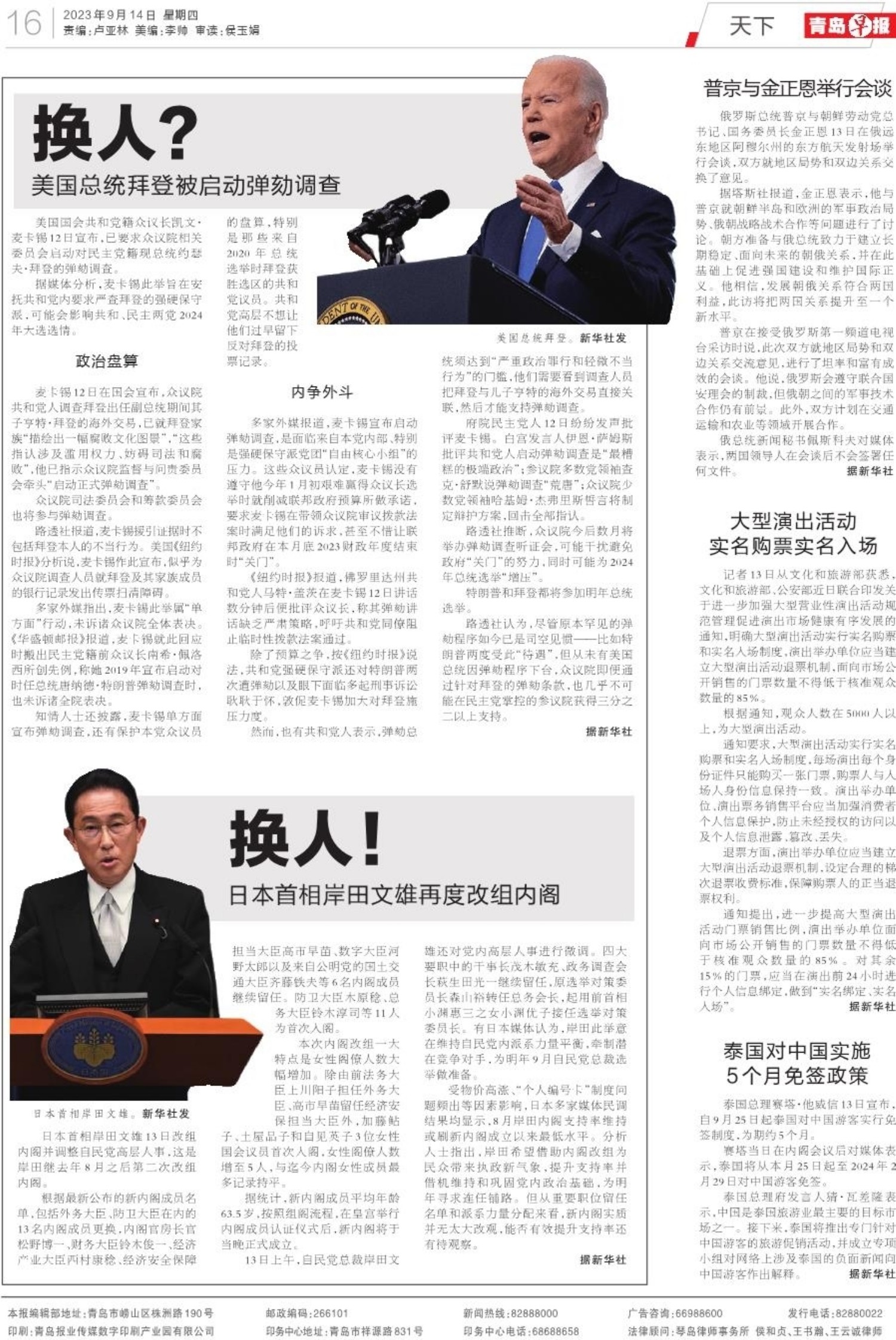 A01 头版 A02 划重点 A03 青岛面孔 A04 今日看点 A05 城市更新建设,让生活更美好 A06 发布 A07 深读 A08 都市圈 A09 身边事 A10 警戒线 A11 身边事 A12 悦读周刊 A13 荐书 A14 地产周刊 A15 验房 A16 天下