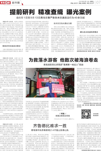 整治行动中,我市交警部门深化开展“五大曝光”行动,每日曝光路面查处的违法案例和典型事故案例,集中曝光夏季整治重点违法突出企业20家,事故多发路段8条。下一步,我市交警将继续紧盯重点区域高风险车辆、严重交通违法、重大交通安全隐患,强化联勤、联动、联防、联控、联治,全力除隐患防风险、保安全保畅通,为广大交通参与者创造良好的道路交通出行环境。 (观海新闻/青岛早报记者 邹忠昊 通讯员 青交宣)