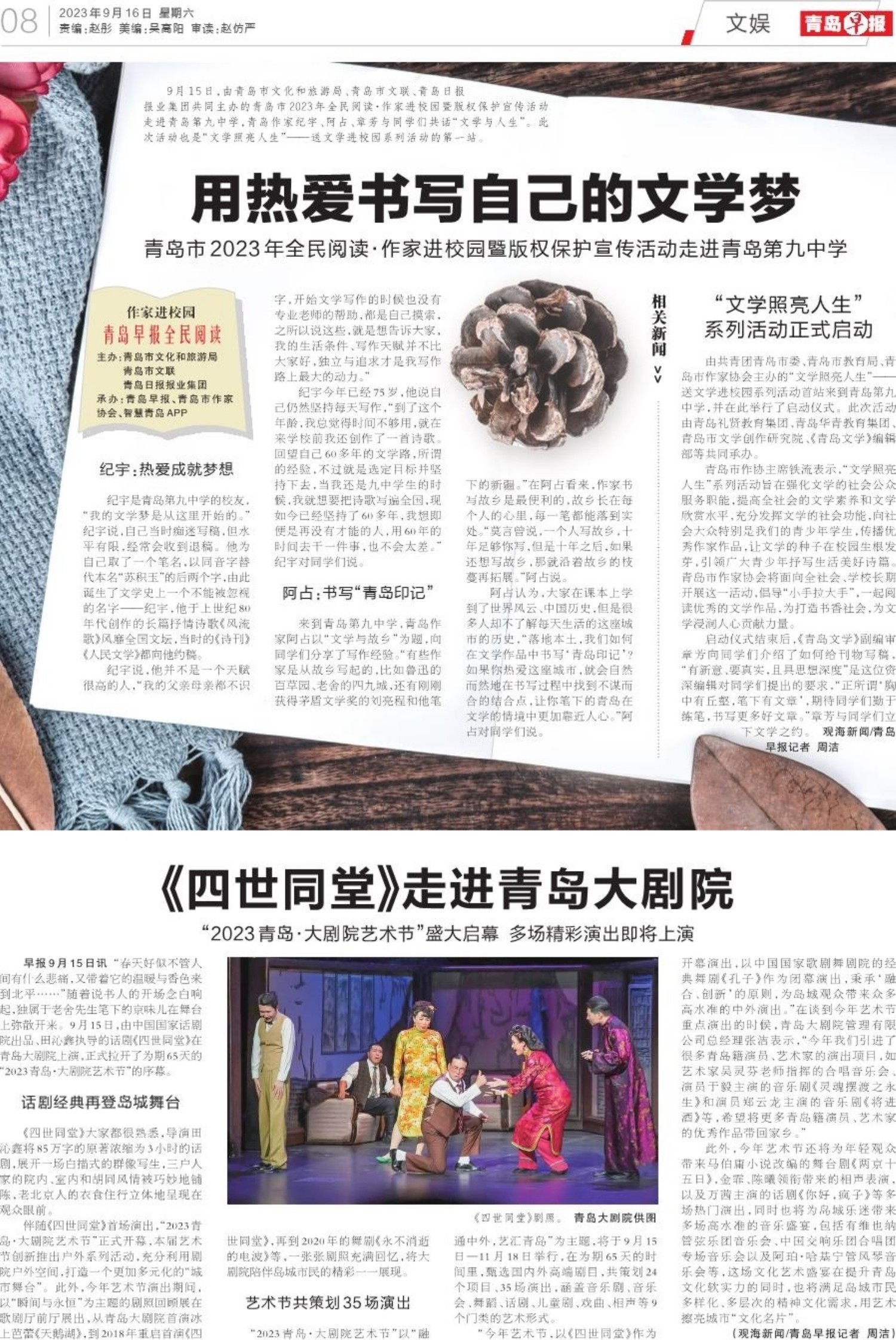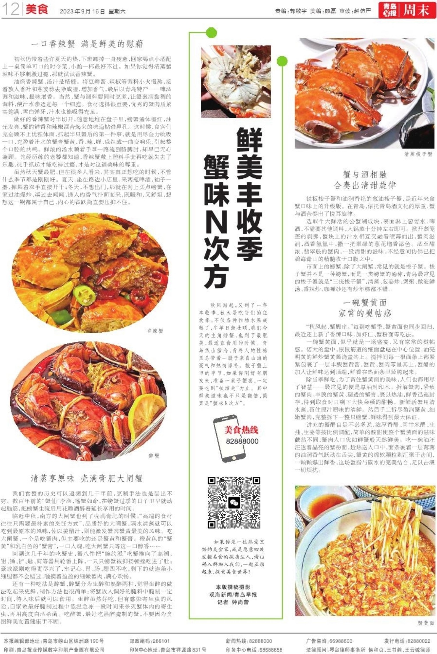 A01 头版 A02 2023青岛国际品质生活博览会 A03 今日看点 A04 一线探访 A05 身边事 A06 请拨82888000 A07 都市圈 A08 文娱 A09 周末 A10 人文青岛 A11 文艺评论 A12 美食
