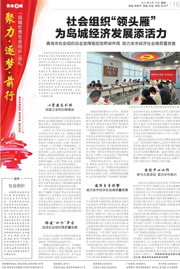 近年来,青岛市社会组织总会坚持以党建为引领,遵循办会理念,践行职责使命,以服务全市社会组织为宗旨,较好地发挥了“领头雁”和枢纽型社会组织的作用,2022年荣获“山东省社会组织标杆”、青岛市两新组织党建工作示范点、青岛市5A级社会组织、青岛市社会组织综合党委直属党组织五星级党支部等荣誉。目前,社会组织已成为服务青岛高质量发展的一支重要力量。