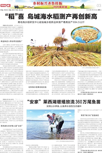 早报9月25日讯 “三、二、一,放!”伴随着响亮的口号声,360万尾鲢鱼鱼苗、鳙鱼鱼苗从氧气袋中跃出,争先恐后地向莱西湖深处游去,为莱西湖注入了新的生机和活力。9月20日,莱西市农业农村局在莱西湖畔举行2023年度增殖放流活动。参加此次增殖放流的水产专家介绍,这些鱼苗放到湖里后可以吃掉水中的浮游生物、水草等,起到改善水质、净化水体的作用,从而实现以水养鱼、以鱼养水的良性生态循环。记者了解到,莱西湖是青岛重要水源地,为保护生态,每年都要放流大量鱼苗。