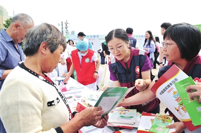 活动现场,工作人员向市民宣传讲解健康生活方式。