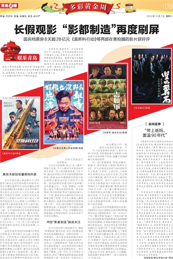 长假休闲,影院里寻一方光影世界是不少人的首选。今年的国庆档共计有12部新片上映,类型多元,足以满足不同群体的观影需求。根据灯塔专业版数据显示,今年长达8天的长假,档期票房超28亿元,虽未及预期,但由此形成的良好口碑有望助推“后国庆档”的观影意愿。值得一提的是,《好像也没那么热血沸腾》《莫斯科行动》这两部影片皆是在东方影都拍摄完成,再度展现了青岛这一“电影之都”在助力电影工业大片拍摄过程中所不可替代的地位。