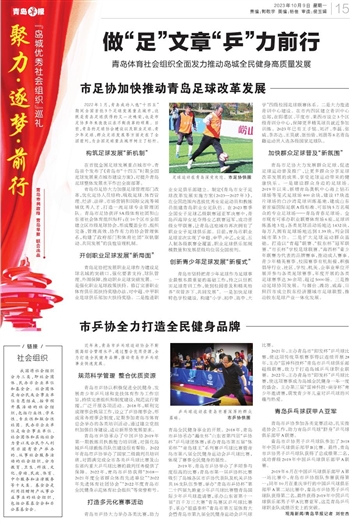 青岛市坚持把青少年足球作为足球事业最根本最重要的基础工作,持之以恒抓实足球青训工作,做到校园普及和精英培养“双管齐下、共同发展”。一是加快足球特色学校建设, 构建“小学、初中、高中、大学”四级校园足球联赛体系。二是大力推进青训中心建设。在市内四区建立青训中心总部,在即墨区、平度市、莱西市设立3个区级青训分中心,保障更多精英球员就近参加训练。2023年已有王子铭、刘洋、李磊、张威、李苏达、王昊斌、张怡倩、刘晨等8名青岛籍运动员入选各级国家足球队。