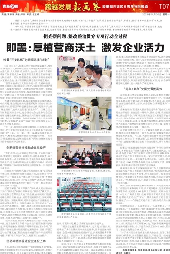今年3月,即墨在全区范围内开展了“强基础提能力优环境促发展”专项行动,提出搭建“三大平台”,深入开展“六大环境专项提升行动”的重点任务,把打造一流营商环境摆在更加突出位置来抓,把查摆问题、整改整治贯穿专项行动全过程,通过不断创新举措,着力解决影响营商环境的堵点、难点问题。