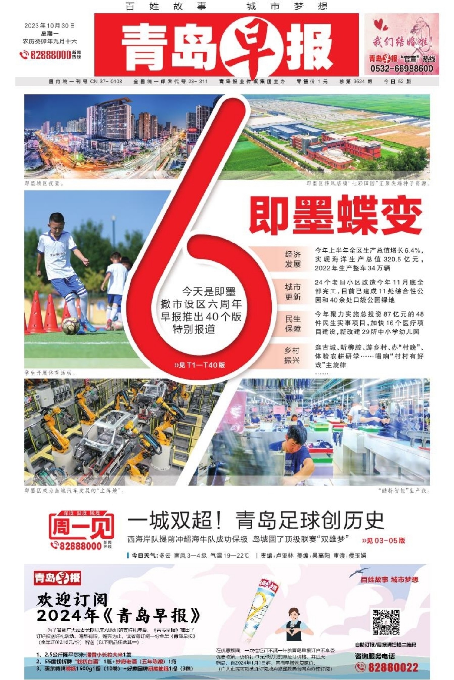 A01 头版 A02 乡村振兴齐鲁样板 ——村村有好戏 A03 周一见 A04 周一见 A05 周一见 A06 发布 A07 加快城市更新建设 提升市民生活品质 A08 都市圈 A09 青岛面孔 A10 身边事 A11 瞰青岛 A12 聚力·逐梦·前行 “岛城优秀社会组织”巡礼 T01 跨越发展新画卷 即墨撤市设区六周年特别报道 T02 跨越发展新画卷 即墨撤市设区6周年特别报道 T04 跨越发展新画卷 即墨撤市设区6周年特别报道 T05 跨越发展新画卷 即墨撤市设区6周年特别报道 T06 跨越发展新画卷 即墨撤市设区6周年特别报道 T07 跨越发展新画卷 即墨撤市设区6周年特别报道 T08 跨越发展新画卷 即墨撤市设区6周年特别报道 T09 跨越发展新画卷 即墨撤市设区6周年特别报道 T10 跨越发展新画卷 即墨撤市设区6周年特别报道 T11 跨越发展新画卷 即墨撤市设区6周年特别报道 T12 跨越发展新画卷 即墨撤市设区6周年特别报道 T13 跨越发展新画卷 即墨撤市设区6周年特别报道 T14 跨越发展新画卷 即墨撤市设区6周年特别报道 T15 跨越发展新画卷 即墨撤市设区6周年特别报道 T16 跨越发展新画卷 即墨撤市设区6周年特别报道 T17 跨越发展新画卷 即墨撤市设区6周年特别报道 T18 跨越发展新画卷 即墨撤市设区6周年特别报道 T19 跨越发展新画卷 即墨撤市设区6周年特别报道 T20 跨越发展新画卷 即墨撤市设区6周年特别报道 T21 跨越发展新画卷 即墨撤市设区6周年特别报道 T22 跨越发展新画卷 即墨撤市设区6周年特别报道 T23 跨越发展新画卷 即墨撤市设区6周年特别报道 T24 跨越发展新画卷 即墨撤市设区6周年特别报道 T25 跨越发展新画卷 即墨撤市设区6周年特别报道 T26 跨越发展新画卷 即墨撤市设区6周年特别报道 T27 跨越发展新画卷 即墨撤市设区6周年特别报道 T28 跨越发展新画卷 即墨撤市设区6周年特别报道 T29 跨越发展新画卷 即墨撤市设区6周年特别报道 T30 跨越发展新画卷 即墨撤市设区6周年特别报道 T31 跨越发展新画卷 即墨撤市设区6周年特别报道 T32 跨越发展新画卷 即墨撤市设区6周年特别报道 T33 跨越发展新画卷 即墨撤市设区6周年特别报道 T34 跨越发展新画卷 即墨撤市设区6周年特别报道 T35 跨越发展新画卷 即墨撤市设区6周年特别报道 T36 跨越发展新画卷 即墨撤市设区6周年特别报道 T37 跨越发展新画卷 即墨撤市设区6周年特别报道 T38 跨越发展新画卷 即墨撤市设区6周年特别报道 T39 跨越发展新画卷 即墨撤市设区6周年特别报道 T40 跨越发展新画卷 即墨撤市设区6周年特别报道
