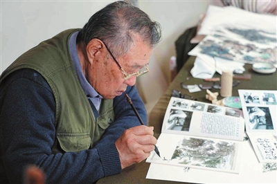 记者日前来到刘文泉家中采访时,他的书房展板上有多幅近期新鲜出炉的山水佳作。他说,“我喜欢用中国传统水墨画来写意山水,年轻的时候遍游祖国大江南北,画过不计其数的名山大川,如今虽然年龄大了很少出门,但只要是之前爬过的泰山、黄山、华山等,去过无数次的咱青岛的海上第一名山崂山,它们都印刻在我的脑海里,现在我也会画出来。”对年近90岁的刘文泉先生来说,每天画画仍是他最大的事情。他说,“在创作时我会感觉始终心情愉悦、开阔。”耄耋之年仍能坚持创作,沉醉于山水画的哲理、意蕴、诗意中,刘文泉对艺术的热爱、创作的勤奋,着实让人感动。