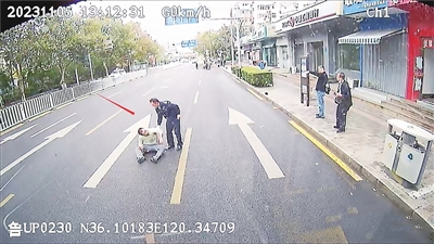 下车救助摔倒的行人