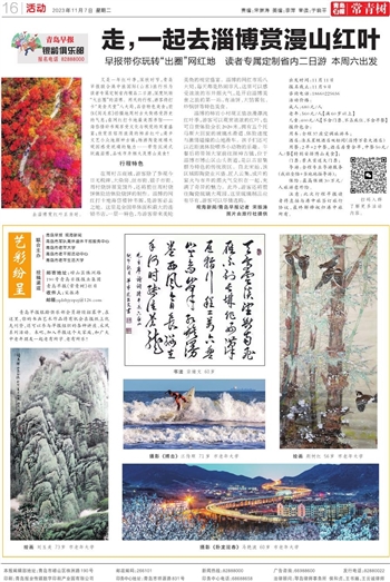 又是一年红叶季,深秋时节,青岛早报联合港中旅国际(山东)旅行社为读者专属定制省内精品二日游,深度玩转“火出圈”的淄博。两天的行程,游客将打卡“美食天堂”八大局,品尝特色美食;前往《闯关东》拍摄地周村古大街感受历史的气息;在网红打卡地最美图书馆——海岱楼钟书阁享受文化与视觉的双重盛宴;欣赏浓郁而浪漫的柿岩红叶;漫步文艺小众地颜神古镇;畅游陶瓷琉璃大观园感受琉璃的魅力……带您沉浸式玩遍淄博,品味市井烟火及博山美食!