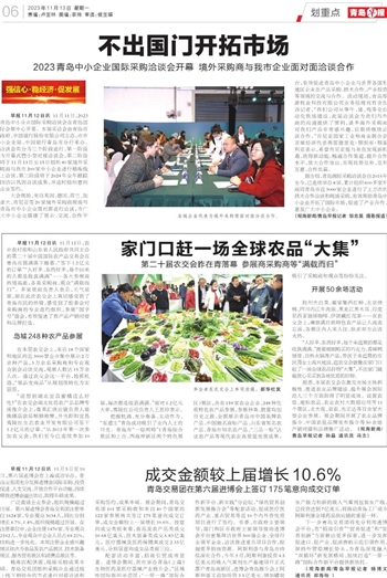 早报11月12日讯 11月11日,2023青岛中小企业国际采购洽谈会在青岛国际会展中心开幕。本届采洽会由青岛市政府、中国银行股份有限公司主办,市中小企业局、中国银行青岛市分行承办。洽谈会共分为三个阶段进行,第一阶段为开幕式暨小型对接洽谈会,第二阶段将于11月13日至15日组织40家境外采购商与我市200家中小企业进行精准线上洽谈,第三阶段将于2024年全年跟踪回访以巩固洽谈成果,并适时组织意向企业签约。