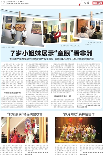 青岛市文化馆馆长陆玲在接受记者采访时表示,此次推出的摄影展,真正的主角是两位7岁的小朋友,她们用自己的视角观察世界,向人们展示了美育的多元途径。相信这一次展览不仅可以提升两位小朋友学习摄影的自信心,也会成为她们成长道路上值得铭记的一刻。“文化馆是终身的美育学校,对于我们每一个文化馆人来说,用更为多元的方式为岛城人民提供美育价值是义不容辞的责任。”陆玲表示,美育教育不仅仅是指让孩子们学习才艺特长,更为重要的是在全社会营造一种美育氛围,“就像这两位小朋友用独特的视角观察非洲大草原,特别关注到了大人视角之外的那些小生灵,拍摄出来的画面最终以展览的形式呈现,不仅具有仪式感,也通过文化馆这个平台向更多人传递出生命的意义与环保的主题,这也正是美育的应有之义。”