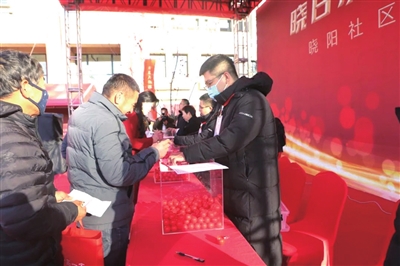 18日上午,红岛街道晓阳社区抓阄分房仪式现场。 通讯员 王海滨 摄