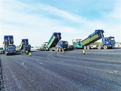 摊铺机、压路机、运输车穿梭轰鸣,进行沥青桥面的摊铺、碾压,施工技术人员手持检测设备不间断地对新铺设的沥青桥面进行检测……近日,在国道204大沽河特大桥施工现场,第二层沥青面铺设接近尾声,即将开始路面附属设施施工。