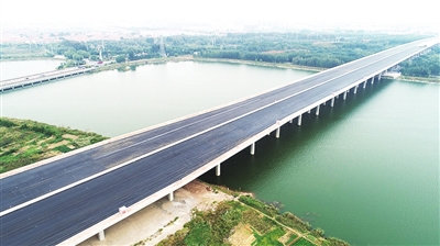 国道204大沽河特大桥完成沥青罩面。