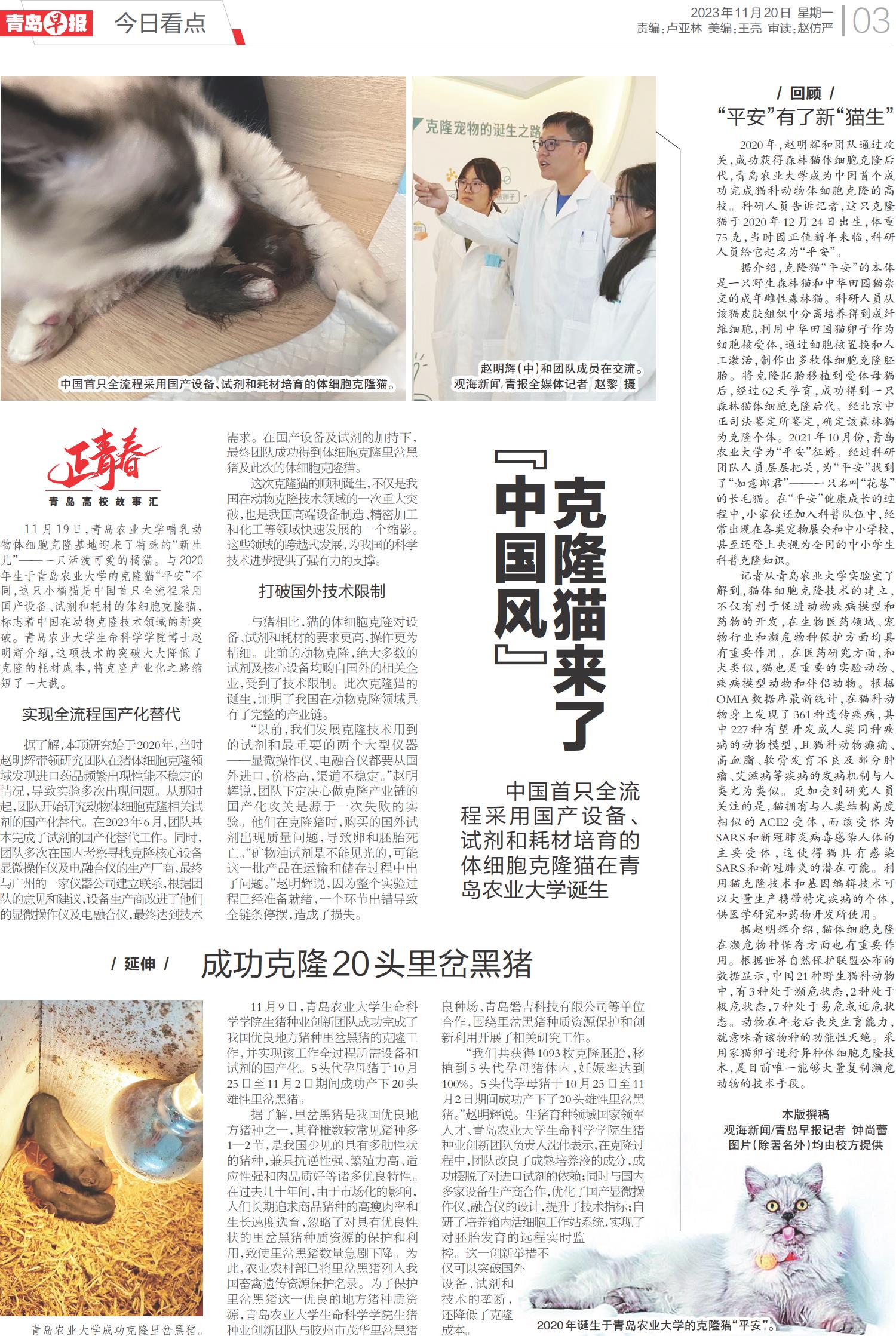 “中国风”克隆猫在青诞生
