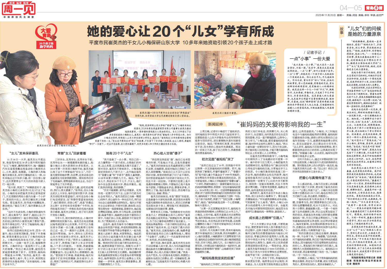 她的爱心让20个“儿女”学有所成