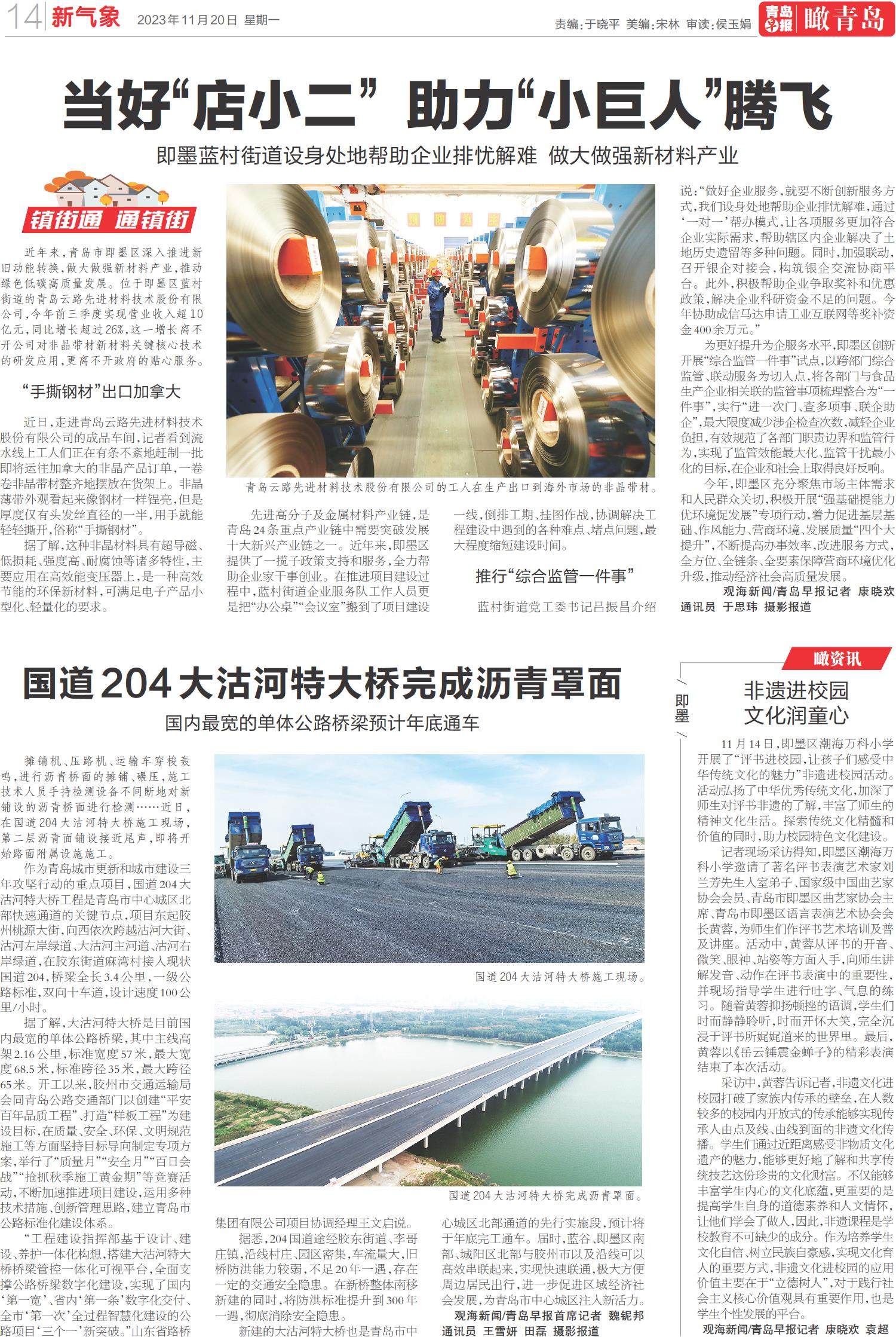 国道204大沽河特大桥完成沥青罩面