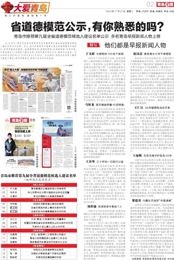 11月20日,青岛市委宣传部发布青岛市推荐第九届全省道德模范候选人建议名单公示启事。近日,省文明委组织开展第九届全省道德模范评选活动,我市积极组织推荐。依据推荐标准、范围及原则,经资格审查、专家评审,评委会提出15名候选人建议名单,并进行集中宣传公示,接受社会监督。公示时间为2023年11月20日至11月24日。公示期间,欢迎社会各界了解学习候选人事迹,进行实事求是、客观公正的评议和监督。