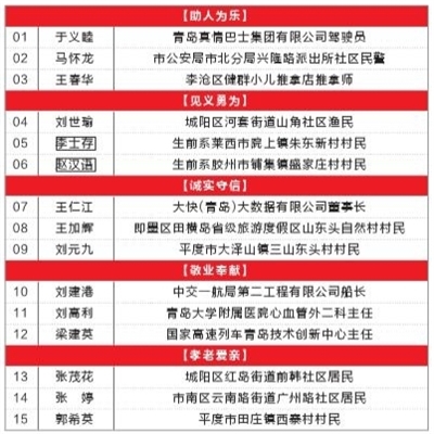 青岛市推荐第九届全省道德模范候选人建议名单 (按照姓氏笔画排名)