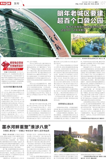 我市生态示范创建取得实效。编制《美丽青岛建设规划纲要(2022—2035年)》,年底前将印发实施。今年李沧区、即墨区成功创建国家生态文明建设示范区,目前全市有7个区市成功创建国家生态文明建设示范区和“两山”基地,省级生态文明建设示范区和“两山”基地10处。