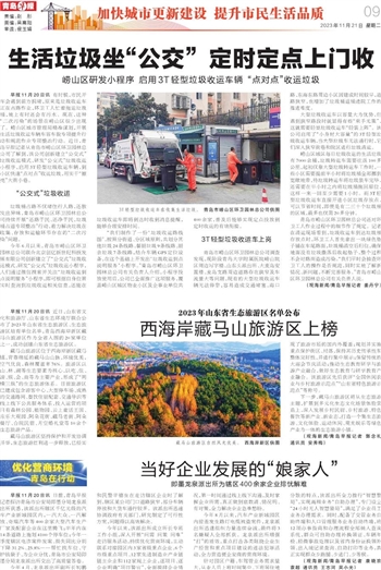 今年6月以来,青岛市崂山区环卫园林总公司联合北京创亿新世纪科技发展有限公司创新建立了“公交式”垃圾收运模式,研发“公交式”垃圾收运小程序,人们通过微信搜索并关注“垃圾收运到点说明服务”小程序,即可根据自身位置实时查询到垃圾收运相关信息,还能在垃圾收运车即将到达时收到消息提醒,能够合理安排时间。