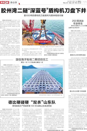 早报12月20日讯 12月18日,“深蓝号”超大直径泥水平衡盾构机刀盘顺利吊装下井,不日将潜行茫茫胶州湾,服务于青岛国信集团投资建设、中交隧道局承建的胶州湾第二隧道主线北线隧道工程。