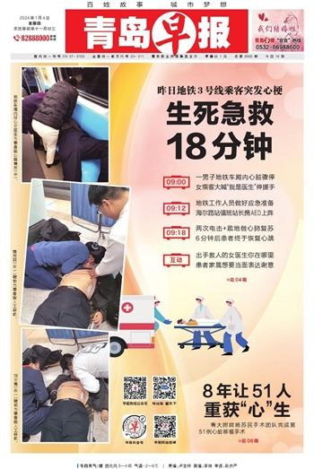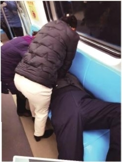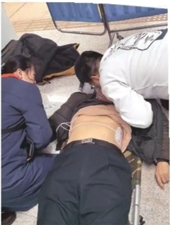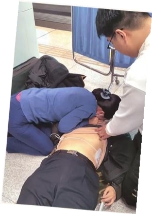 地铁车厢内好心女医生为患者做心肺复苏(中)。