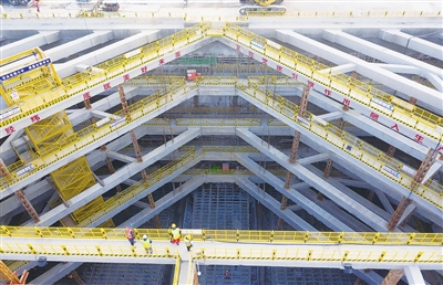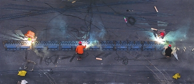 12月5日 在重庆快速路工程现场,工人们抢抓工期,向年底主线通车目标发起最后冲刺。