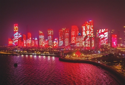 1月19日 浮山湾畔点亮春节主题灯光秀。