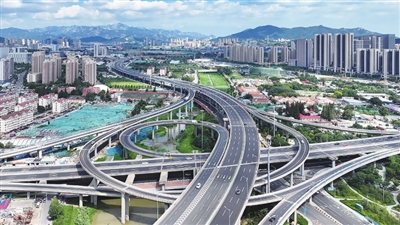 8月29日 随着跨海大桥高架路的“成环连网”,市内道路更加纵横通衢。