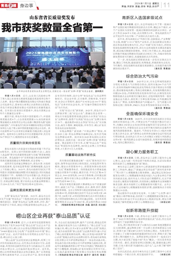 青岛市连续六次获省对市级政府质量工作评议A级等次。在第五届中国质量(成都)大会上,海信入选全国“数字化质量管理创新与实践”典型案例组织名单。青岛超银中学“首席质量官典型案例视频”荣获质量强国建设优秀微视频,系全省唯一。