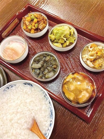“泡饭”,顾名思义是用白开水泡上煮过的米饭,本地人的吃法比较随心,大体有两种:一种是直接将饭菜煮在一起,出一锅“菜泡饭”,另一种则是将白水泡饭配上各色配菜“搭子”。在上海工作的青岛女孩勤勤是泡饭爱好者。她说泡饭比稀饭管饱,吃顿泡饭也能给肠胃解解腻。其实,泡饭的点睛之笔,除了那一番看似清汤寡水的泡饭,最有料的在于那六道“小菜”。这几道小菜,并非素面朝天,其实融合着海派美食文化于其中。